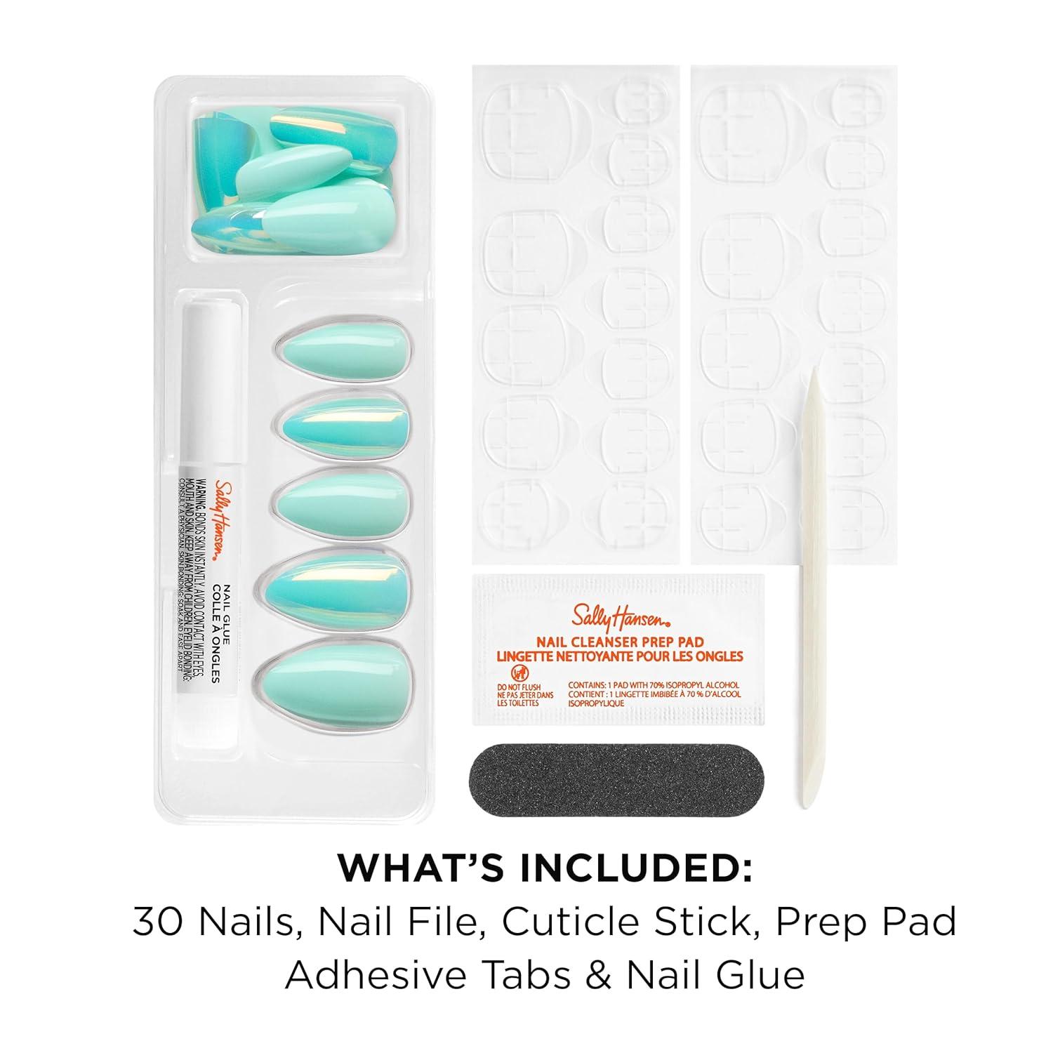 Sally Hansen Salon Effects Perfect Press-On Nails | Sq-oval Shape | Easy to Apply, Non-Damaging | 30 Nails, Nail Glue, Adhesive Tabs, File | Miss Bliss(Sq-oval Nails – In Amaze-Mint)