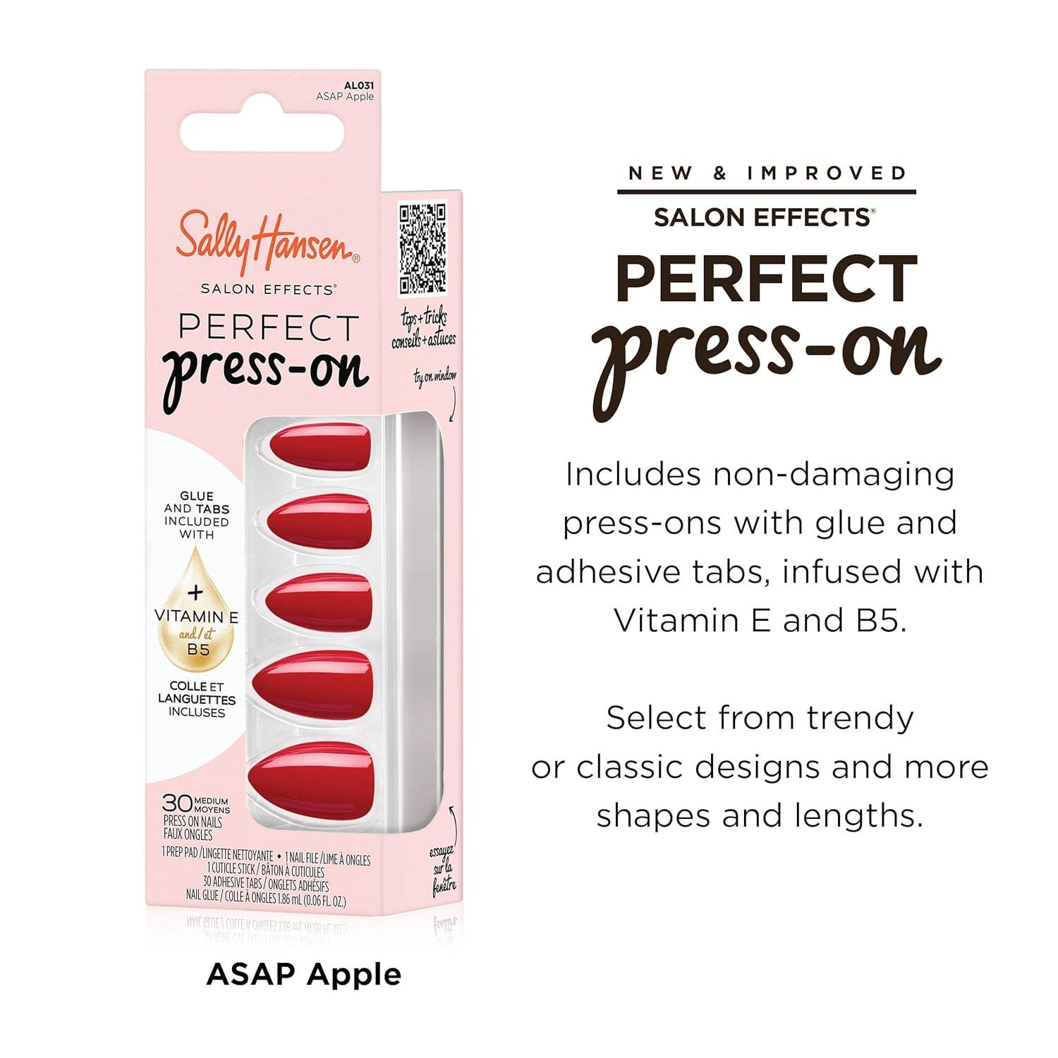 Sally Hansen Salon Effects Perfect Press-On Nails | Sq-oval Shape | Easy to Apply, Non-Damaging | 30 Nails, Nail Glue, Adhesive Tabs, File | Miss Bliss(Almond Nails – ASAP Apple)