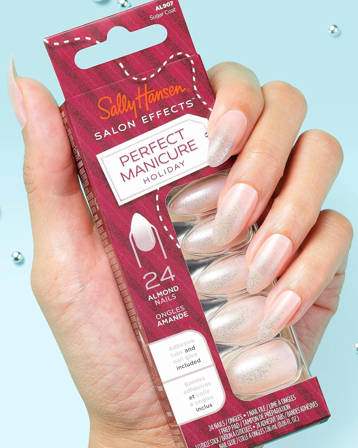 Sally Hansen Salon Effects® Perfect Manicure, Only Have Ice For You, Press On Nails, Almond Shaped, Non-Damaging Adhesive Tabs, File, and Alcohol Pad Included (Pack of 2)(You Sleigh Me)