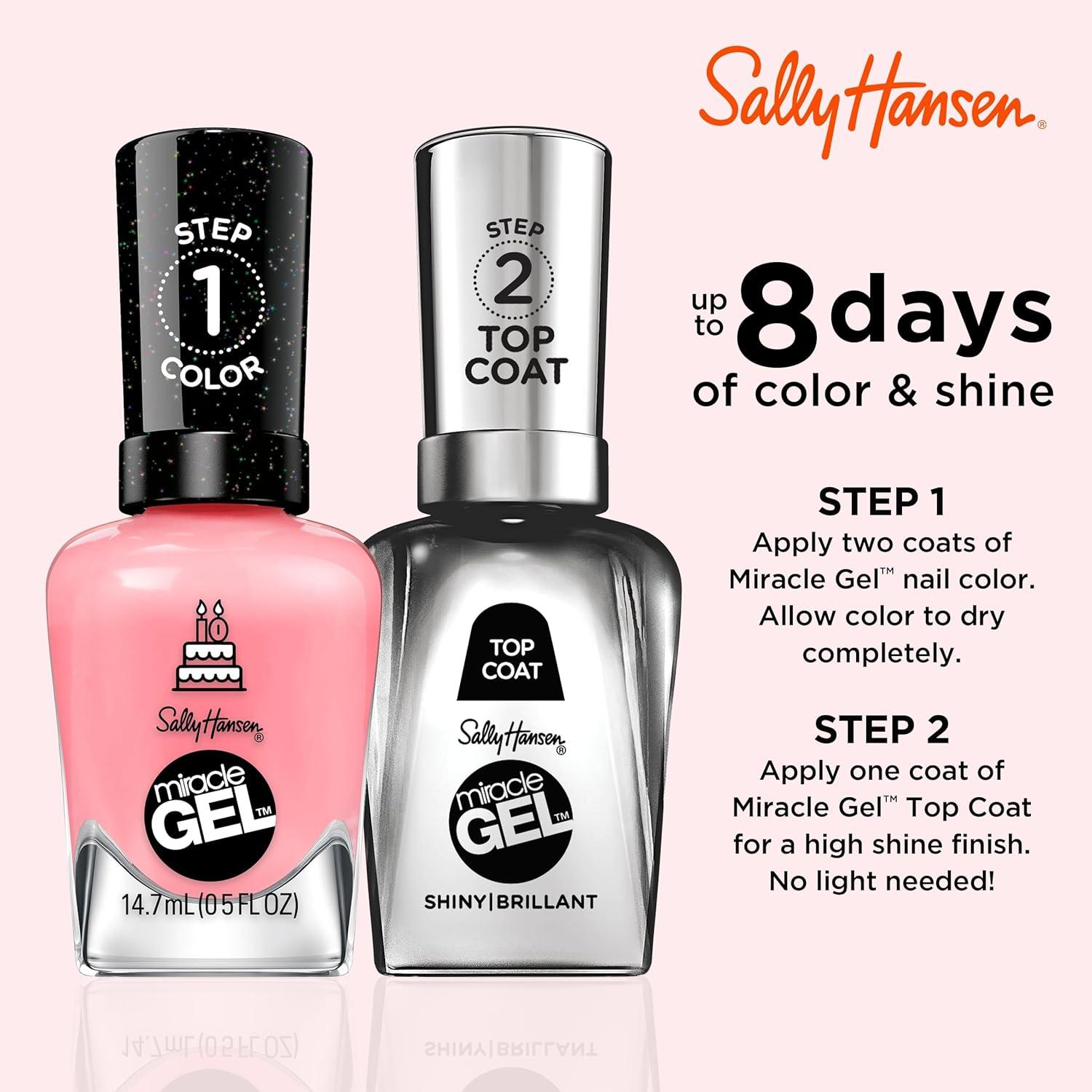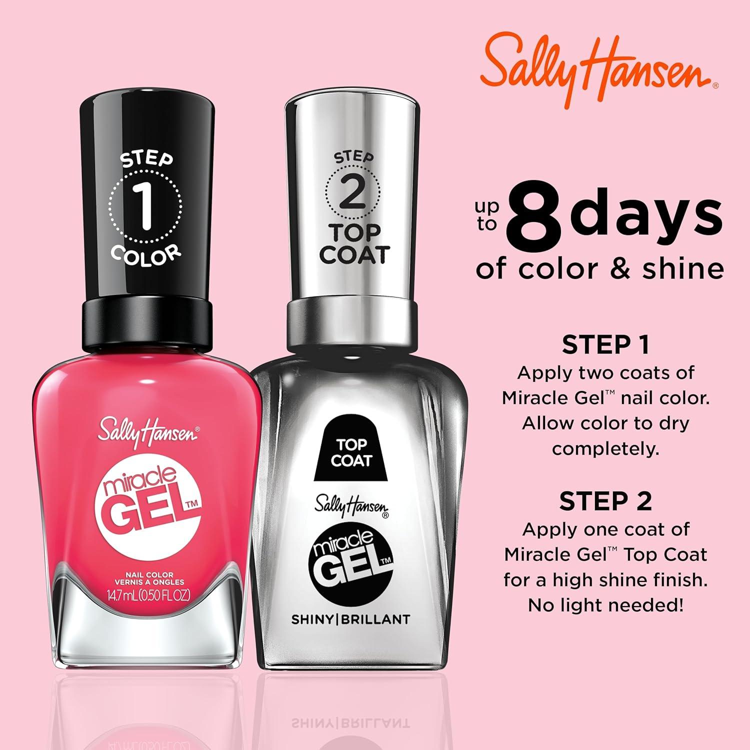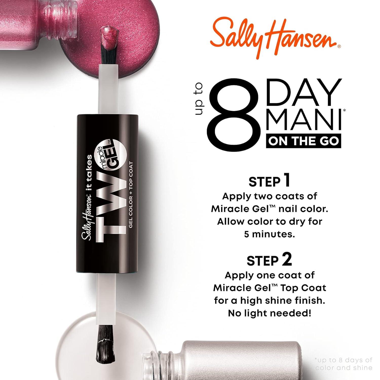 Sally Hansen Miracle, Once Chiffon A Time, Dual Ended Nail Gel Color + Top Coat, Color Nail Polish, Gel Top Coat, Sheer, No UV Light, Long Lasting(0.12 Fl Oz (Pack of 2))