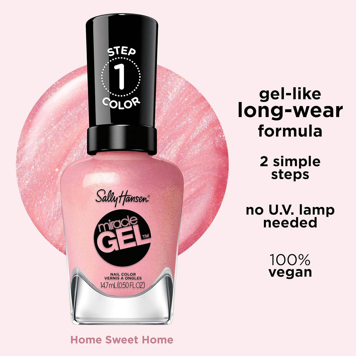 Sally Hansen Miracle Gel Salon Quality Nail Polish | Gel-Like Formula, Two-Step System, No UV Light Needed, Long Lasting | Opaque, Shimmer | 174 Shhhh-Immer | Rose Gold Nail Color(241 Home Sweet Home)