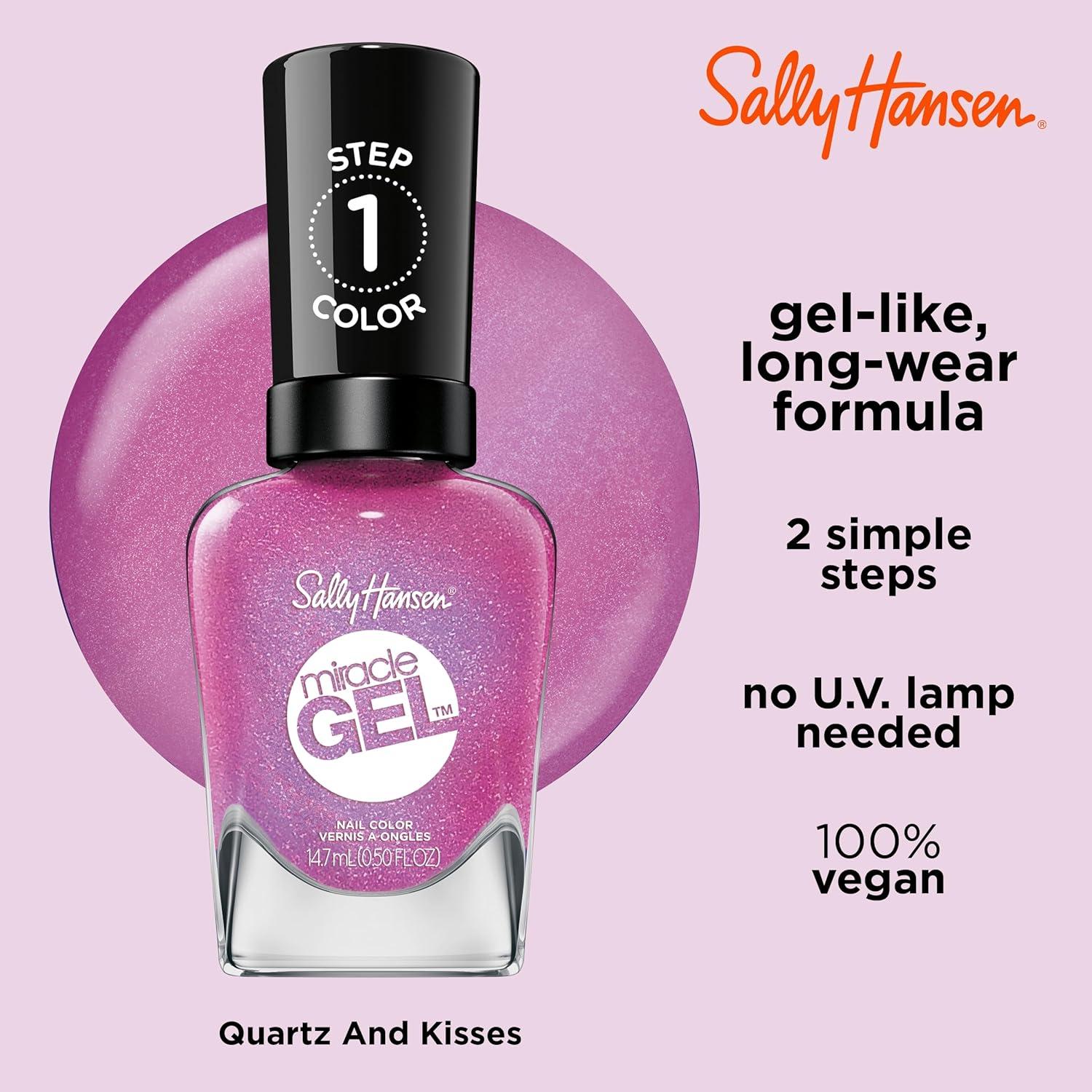 Sally Hansen Miracle Gel Salon Quality Nail Polish | Gel-Like Formula, Two-Step System, No UV Light Needed, Long Lasting | Opaque, Shimmer | 174 Shhhh-Immer | Rose Gold Nail Color(512 Quartz And Kisses)