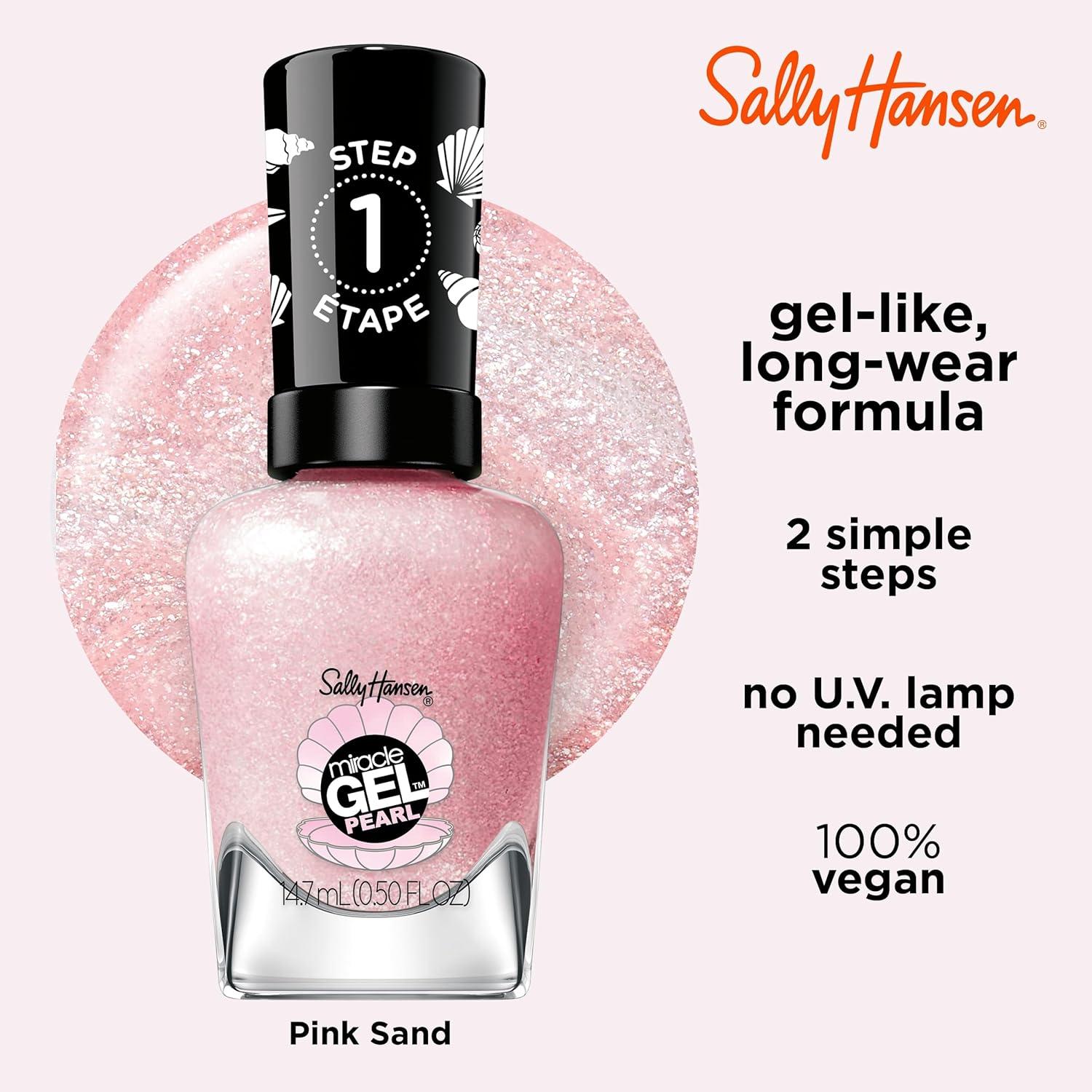 Sally Hansen Miracle Gel Salon Quality Nail Polish | Gel-Like Formula, Two-Step System, No UV Light Needed, Long Lasting | Opaque, Shimmer | 174 Shhhh-Immer | Rose Gold Nail Color(906 Pink Sand)