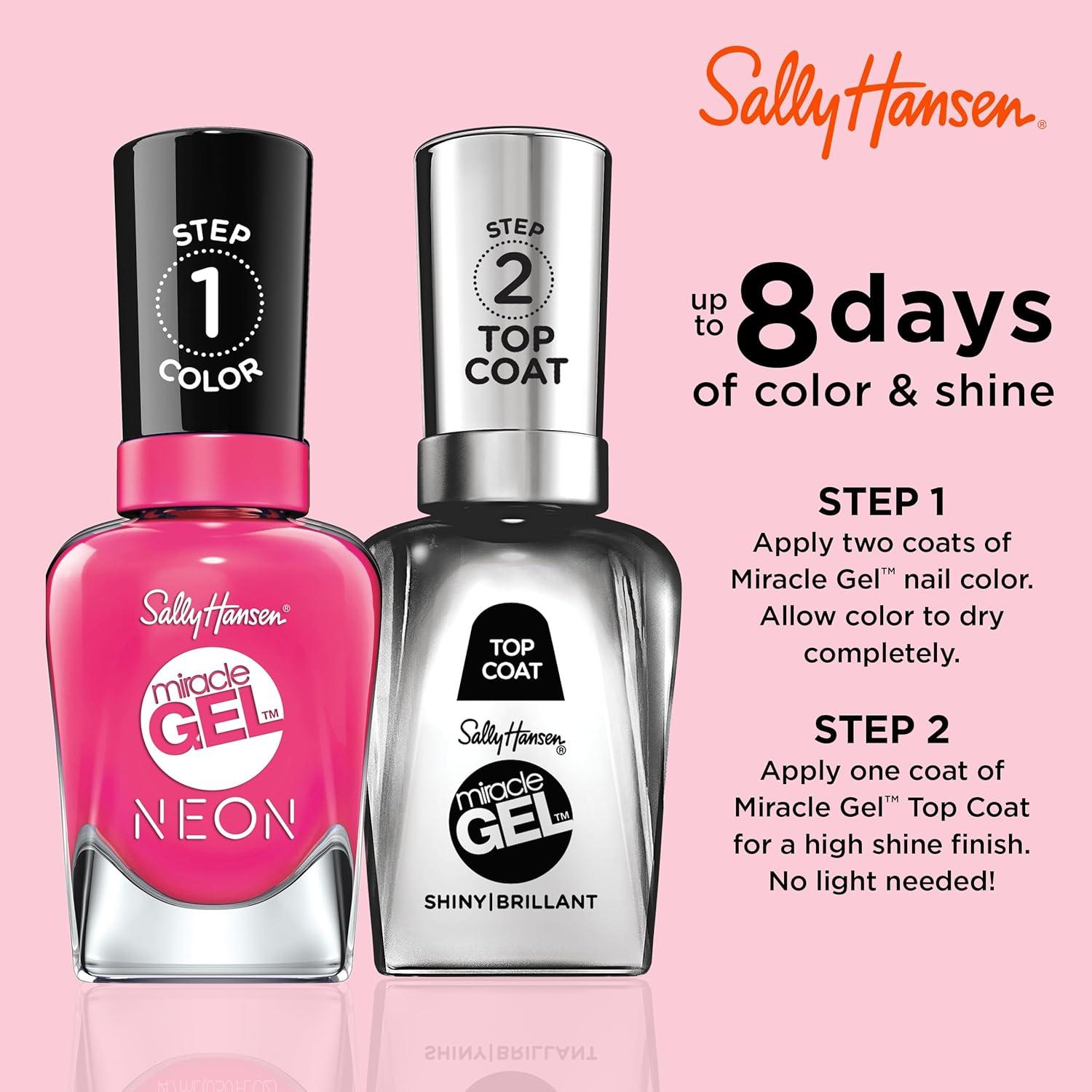 Sally Hansen Miracle Gel Salon Quality Nail Polish | Gel-Like Formula, Two-Step System, No UV Light Needed, Long Lasting | Opaque, Shimmer | 174 Shhhh-Immer | Rose Gold Nail Color(50 Fuchsia Fever (Neon))
