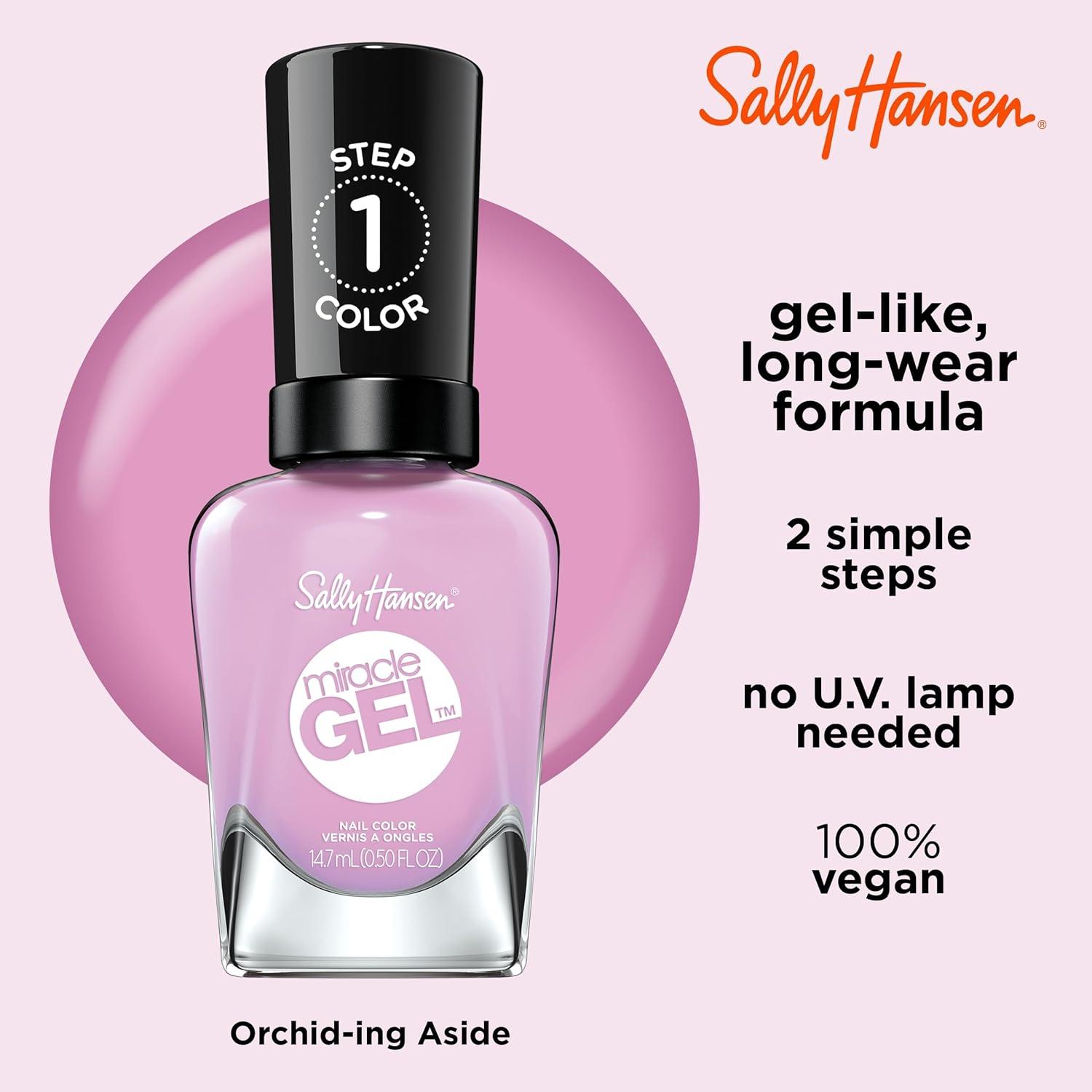 Sally Hansen Miracle Gel Salon Quality Nail Polish | Gel-Like Formula, Two-Step System, No UV Light Needed, Long Lasting | Opaque, Shimmer | 174 Shhhh-Immer | Rose Gold Nail Color(534 Orchid-ing Aside)