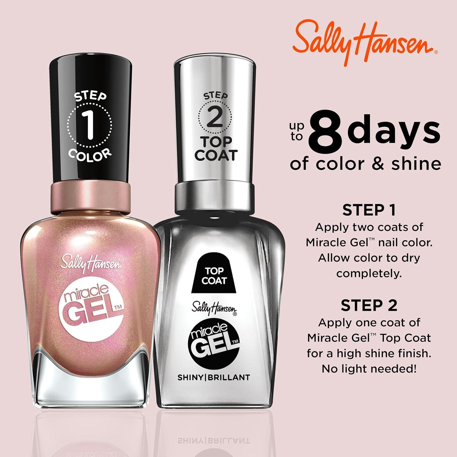 Sally Hansen Miracle Gel Salon Quality Nail Polish | Gel-Like Formula, Two-Step System, No UV Light Needed, Long Lasting | Opaque, Shimmer | 174 Shhhh-Immer | Rose Gold Nail Color(250 Shell Yeah)