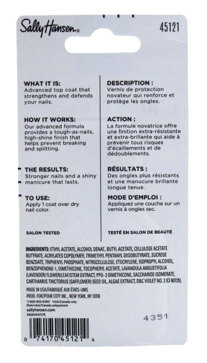 Sally Hansen Insta-Dri®, Dries Instantly Top Coat, Quick Dry, Long Lasting, Streak-Free Shine, Clear Nail Polish(Advanced Hard as Nails Stregthener)