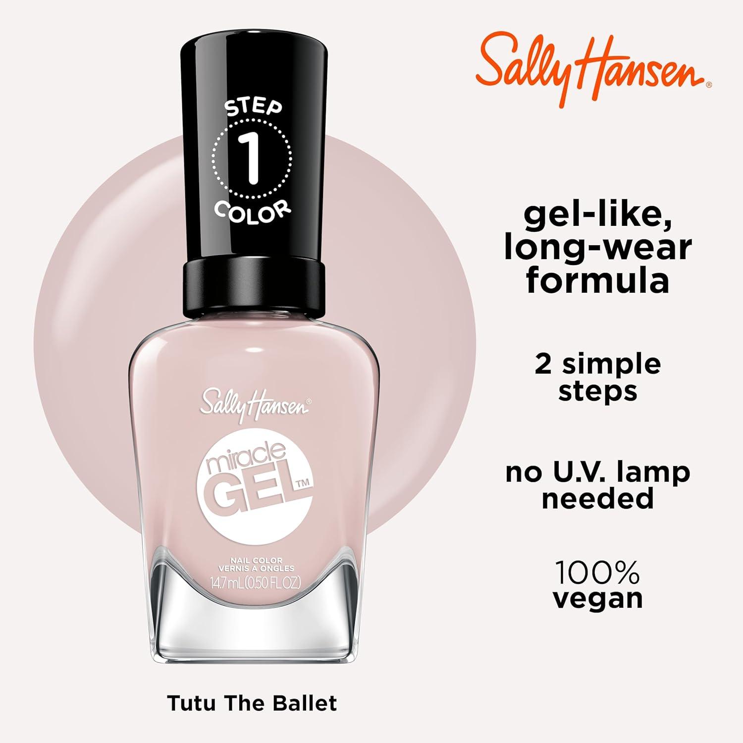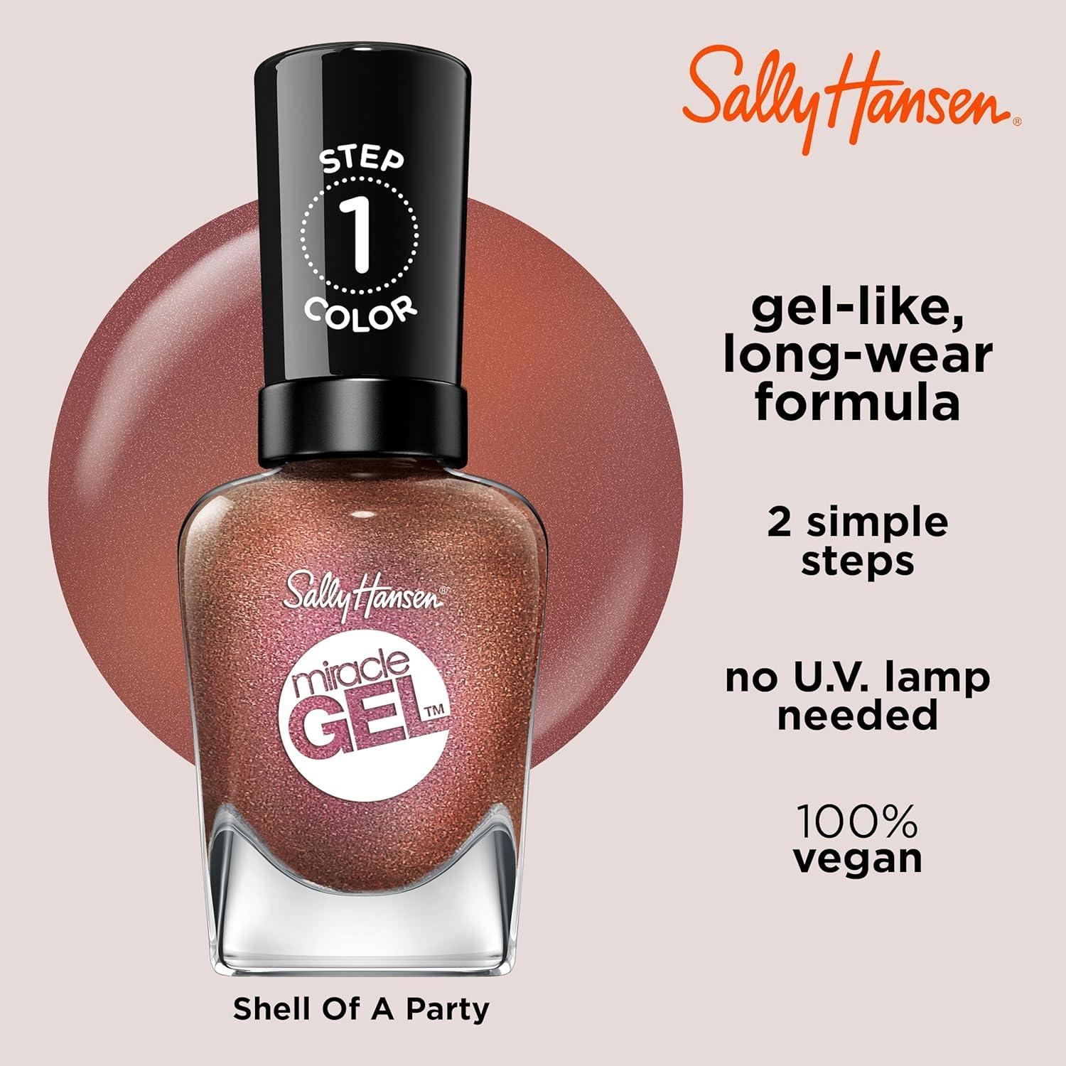 Sally Hansen Miracle Gel, Tinsel Time for Two, Long Lasting, Gel-Like Formula, No UV Lamp Needed, Semi Opaque, Shimmery Nude Nail Polish(923 Sugar Plum Kisses)
