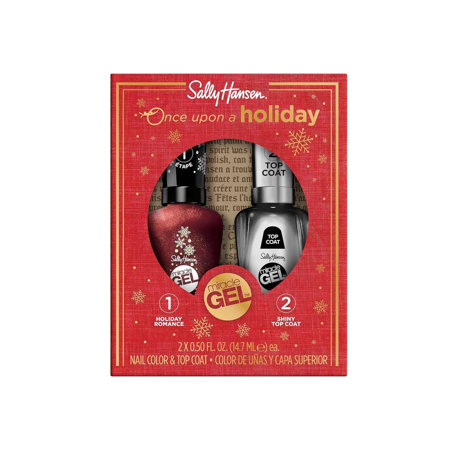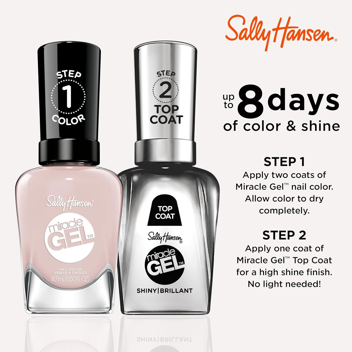 Sally Hansen Miracle Gel, Tinsel Time for Two, Long Lasting, Gel-Like Formula, No UV Lamp Needed, Semi Opaque, Shimmery Nude Nail Polish(920 Holiday Romance + 101 Shiny Top Coat)