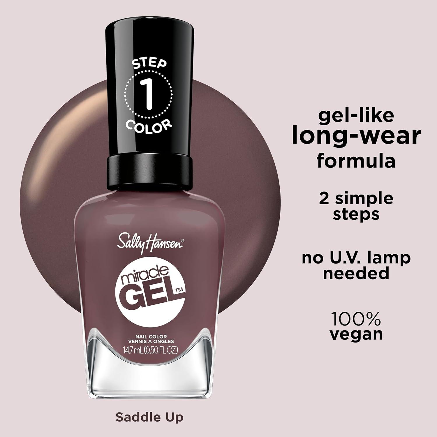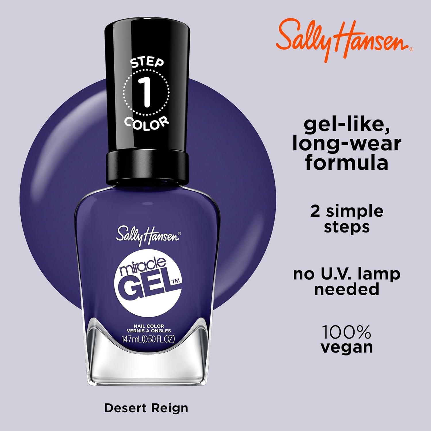 Sally Hansen Miracle Gel Salon Quality Nail Polish | Gel-Like Formula, Two-Step System, No UV Light Needed, Long Lasting | Opaque, Shimmery | 529 Hunger Flames | Purple Nail Color(605 Desert Reign)