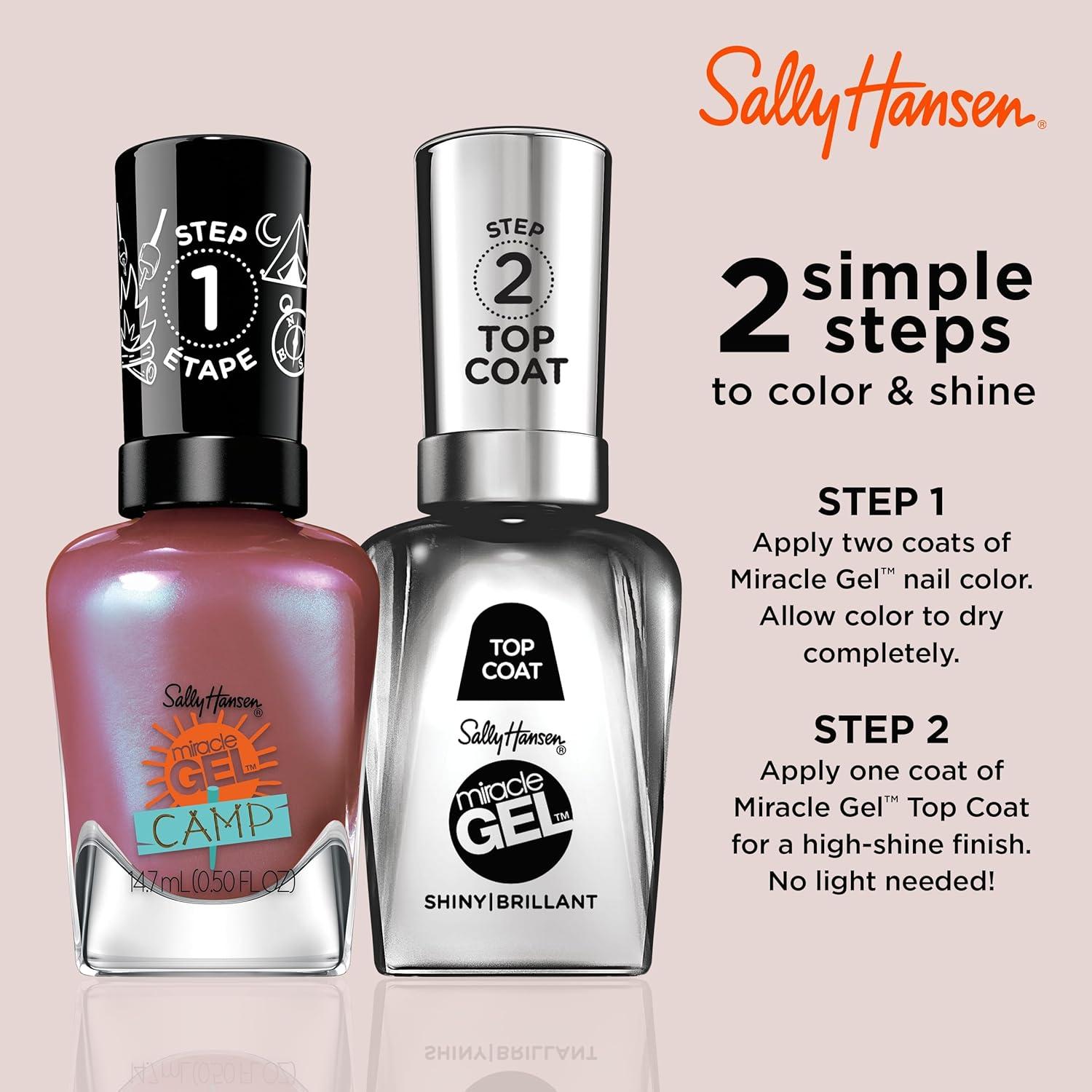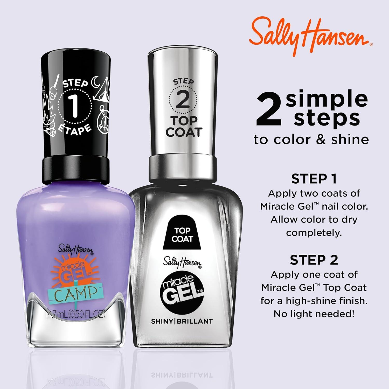 Sally Hansen Miracle Gel Salon Quality Nail Polish | Gel-Like Formula, Two-Step System, No UV Light Needed, Long Lasting | Opaque, Shimmery | 529 Hunger Flames | Purple Nail Color(894 Summer Nights)