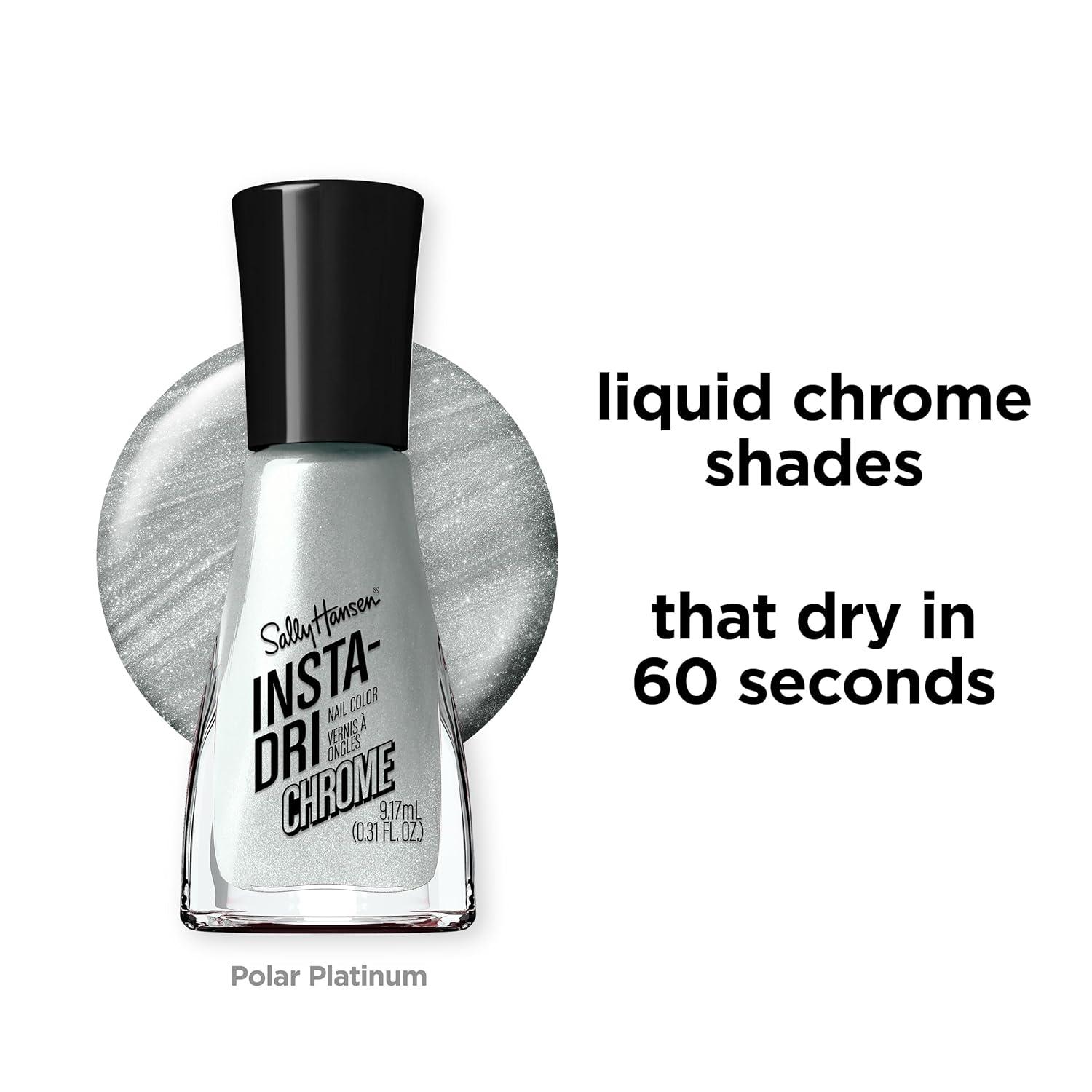 Sally Hansen Insta-Dri Nail Polish Chrome Top Coat | Quick Dry, Long Lasting, Streak-Free Shine, Opaque | Polar Platinum | Metallic Silver Nail Polish(125 Polar Platinum)