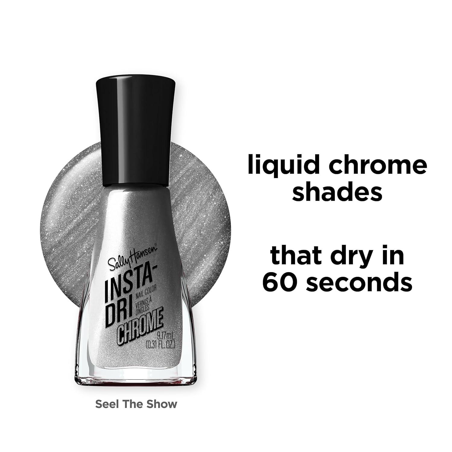 Sally Hansen Insta-Dri Nail Polish Chrome Top Coat | Quick Dry, Long Lasting, Streak-Free Shine, Opaque | Polar Platinum | Metallic Silver Nail Polish(126 Steel the Show)