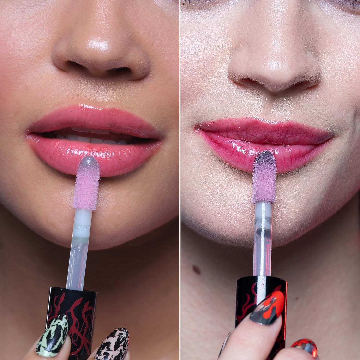 In just 1 plush swipe, the gloss color instantly transforms from spooky black and green to a sheer, customized pink.