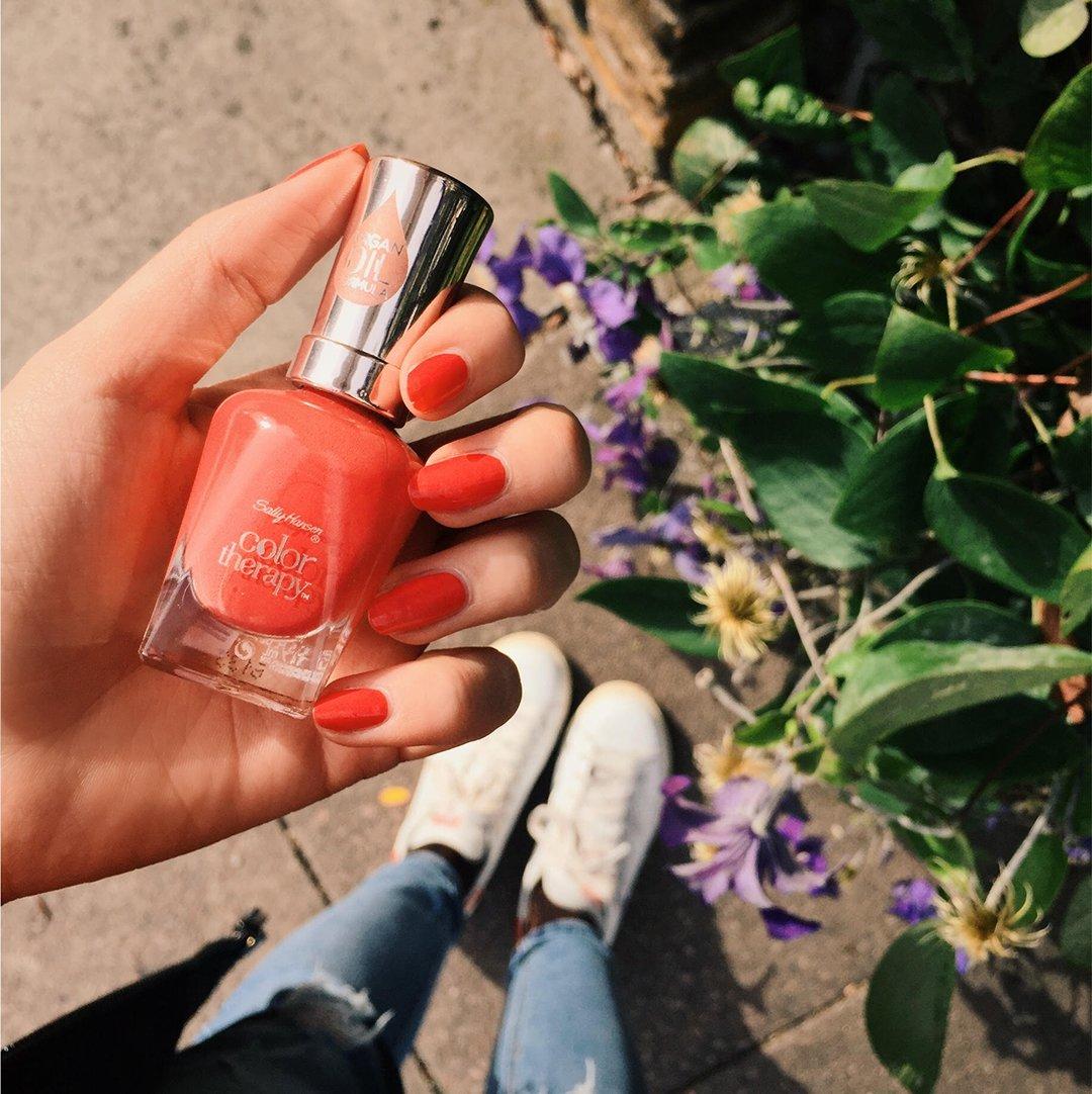 Welcome to Color Therapy. Sally Hansen Color Therapy Lacquer Nail Polish doesn’t just add a splash of vibrant color to your nails. This nail polish also provides a restorative boost. With its argan oil formula, the nail polish delivers an instant moisturizing effect.