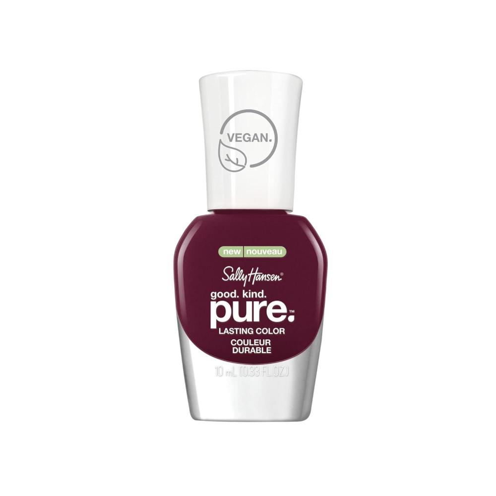 Good. Kind. Pure.® is our first plant-based, 100% vegan, 16-free* nail polish is inspired by nature, offering nothing but color & shine With 100% natural and plant-based bristles and rich colors, this vegan nail polish can give your nails color and shine that lasts up to seven days. The 16-free formula contains no formaldehyde or any other harsh chemicals. Sally Hansen Good.Kind.Pure® is perfect if you want long lasting nail polish that’s healthy for both your nails and the planet. Complete with our top coat and hardener for the perfect mani.