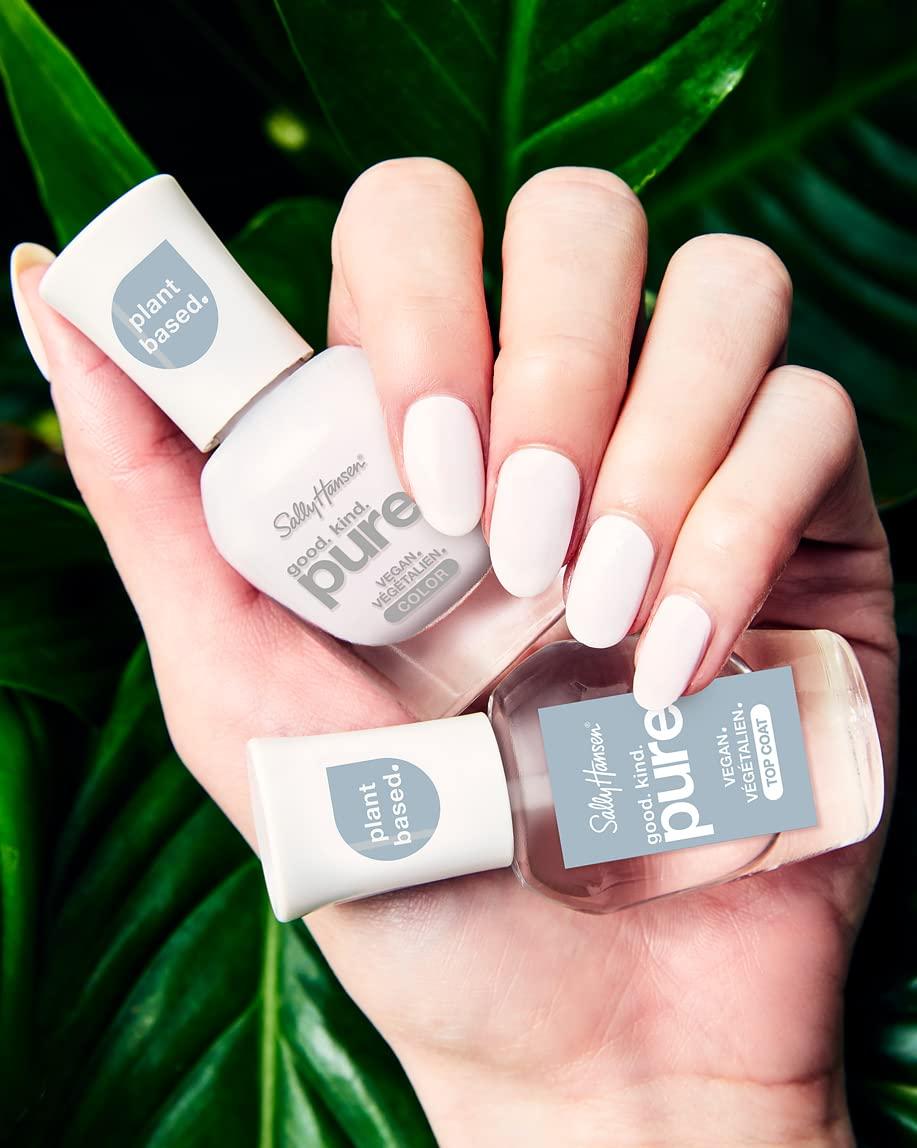 Good. Kind. Pure.® is our first plant-based, 100% vegan, 16-free* nail polish is inspired by nature, offering nothing but color & shine With 100% natural and plant-based bristles and rich colors, this vegan nail polish can give your nails color and shine that lasts up to seven days. The 16-free formula contains no formaldehyde or any other harsh chemicals. Sally Hansen Good.Kind.Pure® is perfect if you want long lasting nail polish that’s healthy for both your nails and the planet. Complete with our top coat and hardener for the perfect mani.
