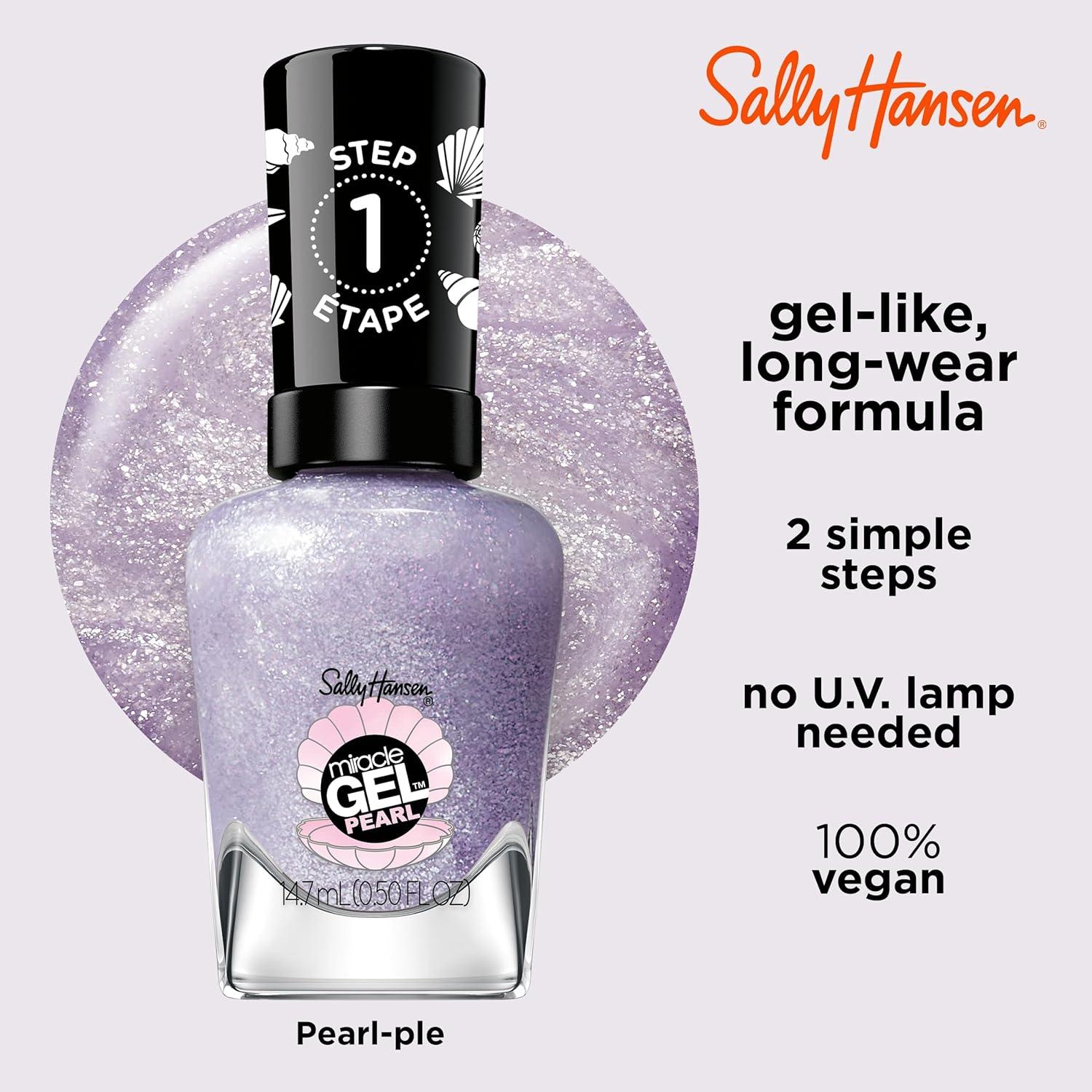 Sally Hansen Miracle Gel Salon Quality Nail Polish | Gel-Like Formula, Two-Step System, No UV Light Needed, Long Lasting | Opaque, Shimmery | 529 Hunger Flames | Purple Nail Color(908 Pearl-ple)