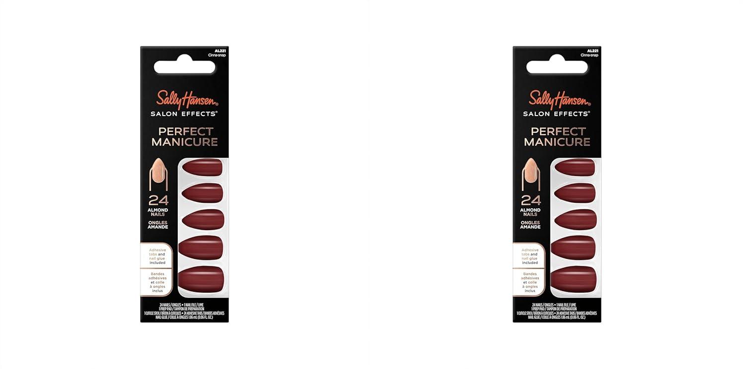 Sally Hansen Salon Effects® Perfect Manicure, Only Have Ice For You, Press On Nails, Almond Shaped, Non-Damaging Adhesive Tabs, File, and Alcohol Pad Included (Pack of 2)(Cinna-Snap)
