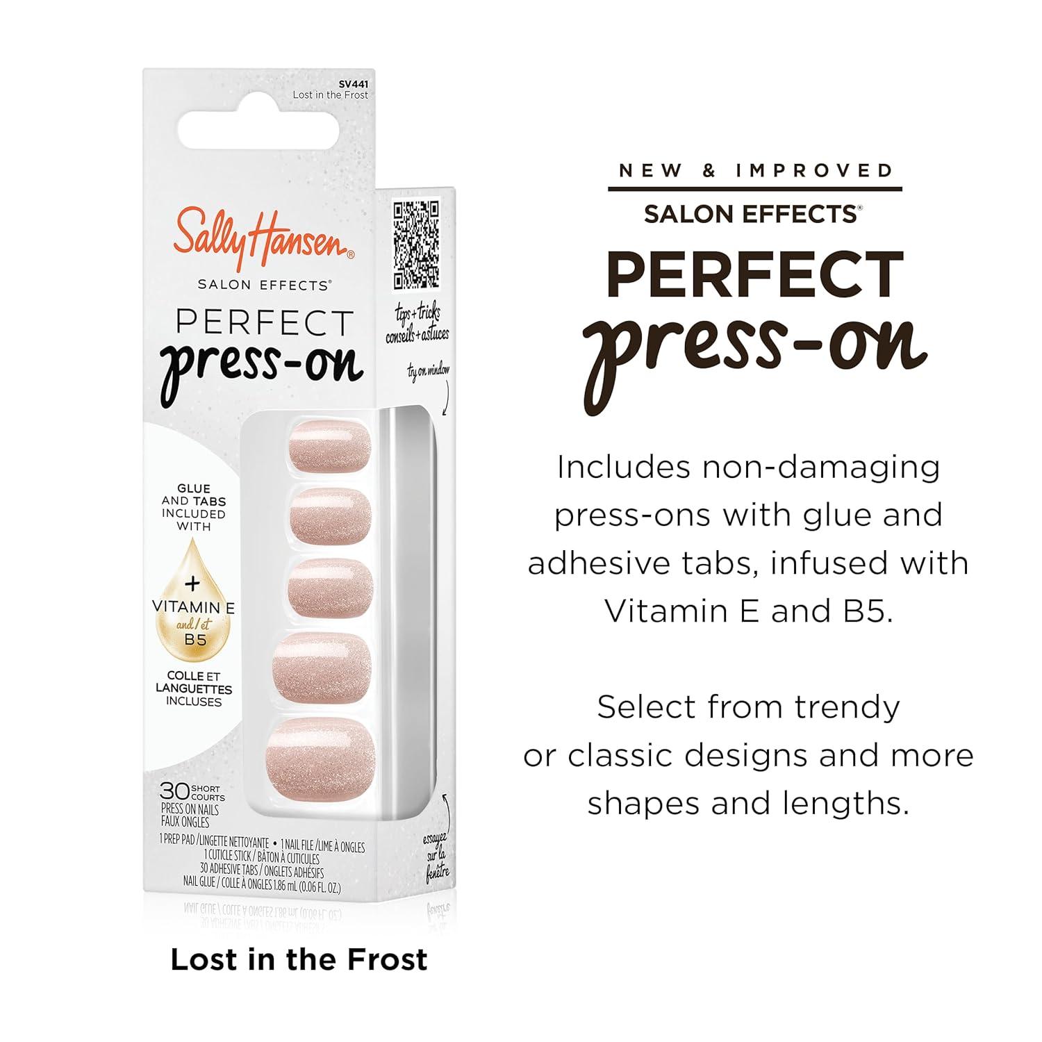 Sally Hansen Salon Effects Perfect Press-On Nails | Sq-oval Shape | Easy to Apply, Non-Damaging | 30 Nails, Nail Glue, Adhesive Tabs, File | Miss Bliss(Sq-oval Nails – Lost In The Frost)