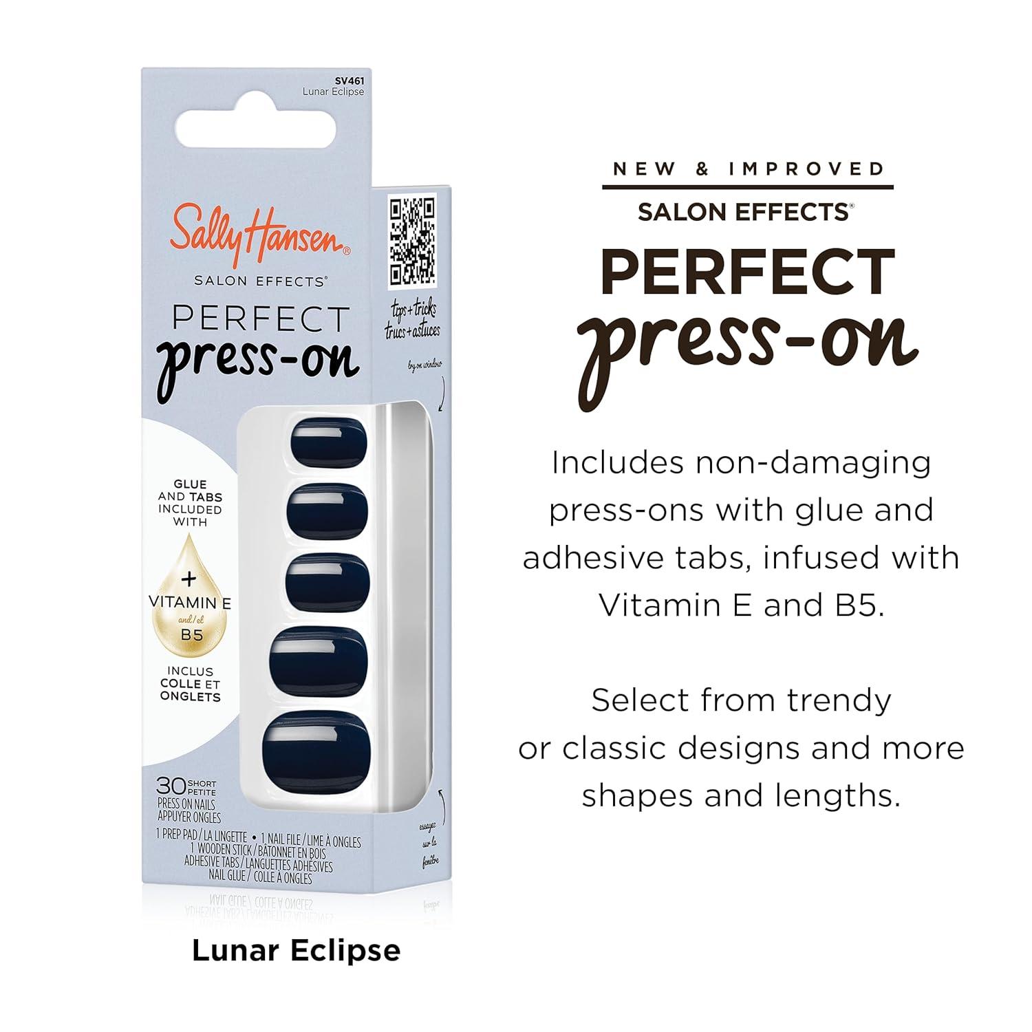 Sally Hansen Salon Effects Perfect Press-On Nails | Sq-oval Shape | Easy to Apply, Non-Damaging | 30 Nails, Nail Glue, Adhesive Tabs, File | Miss Bliss(Square-Oval Nails – Lunar Eclipse)